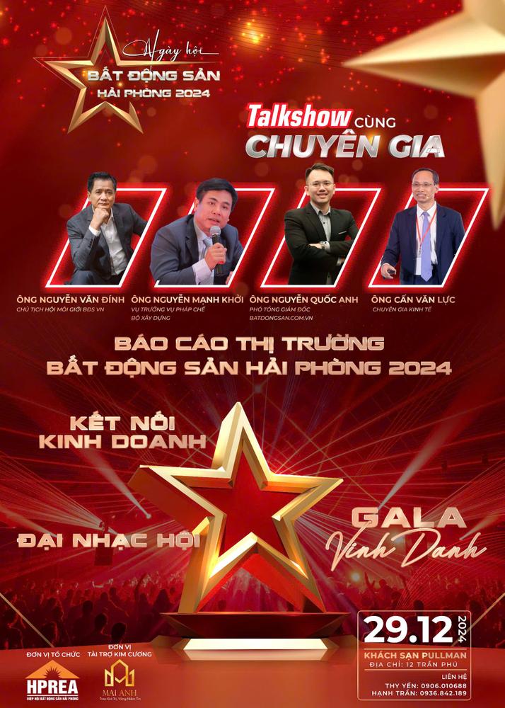 Sự kiện “Ngày hội Bất động sản Hải Phòng 2024” sẽ diễn ra trọn vẹn trong ngày 29/12/2024 với các nội dung chính như sau: