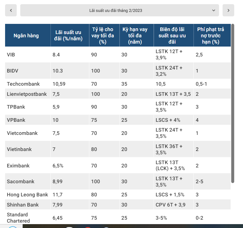 Bảng Lãi Suất Ngân Hàng Vay Mua Nhà Tháng 3/2023 Được Batdongsan.com.vn Cập Nhật Mới Nhất: