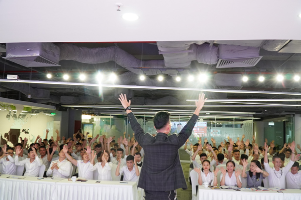 Ông Hùng và các học viên trong một buổi đào tạo tại CenGroup.